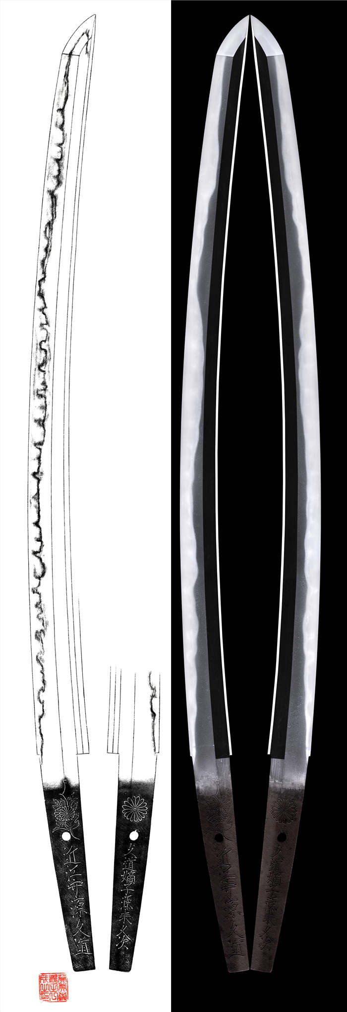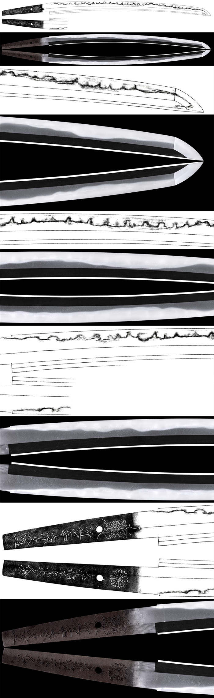 茎に菊紋を切る作品と枝掬を彫る作品とがあり当時評価された刀工であります。