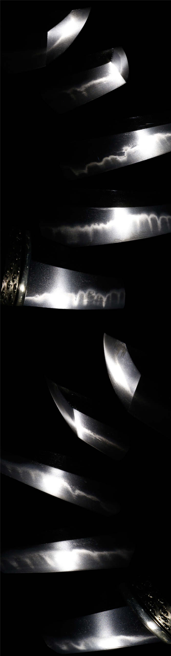 刃紋:錵出来。匂口の深い互の目乱れ、刃中、砂流、金筋が働く。
