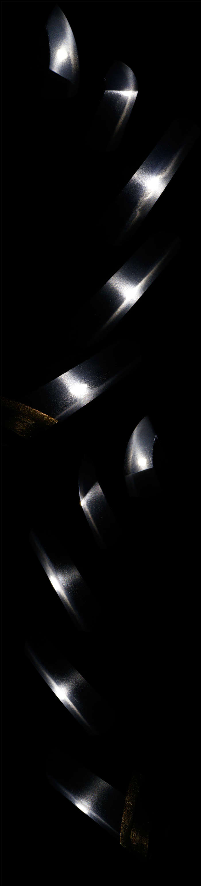 刀镡:椭圆形铁质,赤铜蜘蛛图案,蜘蛛丝金绘。