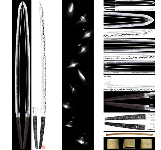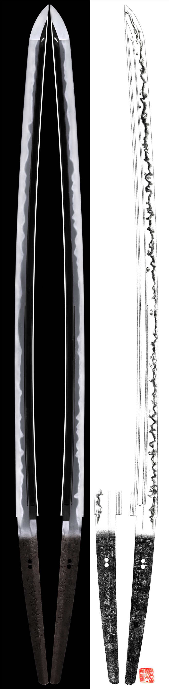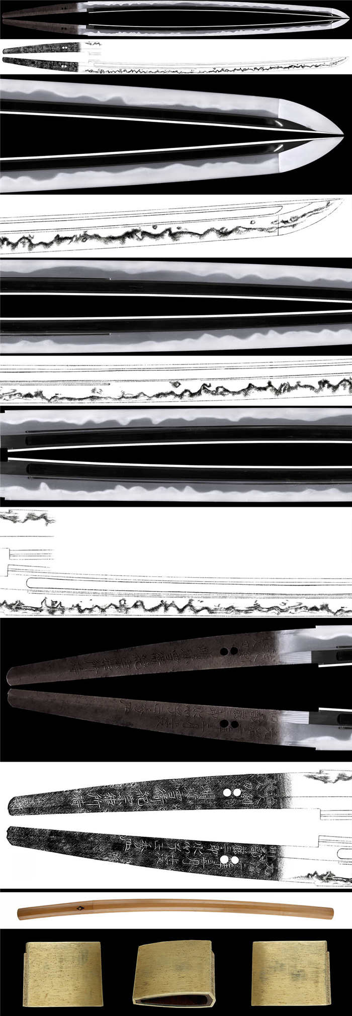 体配:身幅宽,元重厚,三之栋造,表里雕刻棒樋和添樋,反适度,大切先。