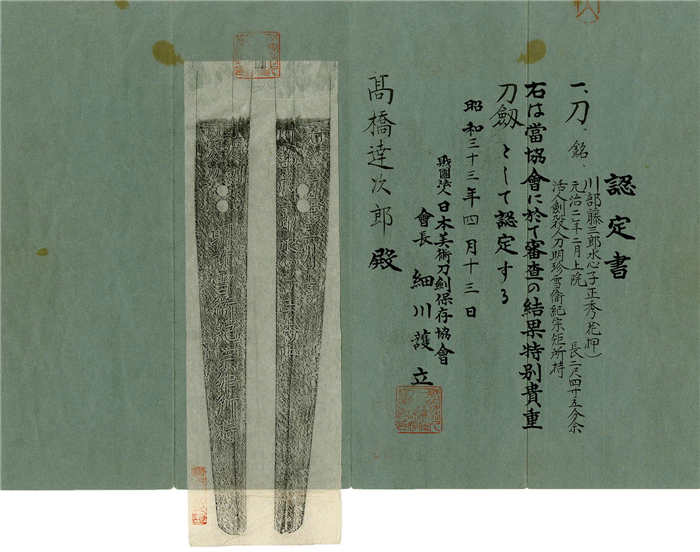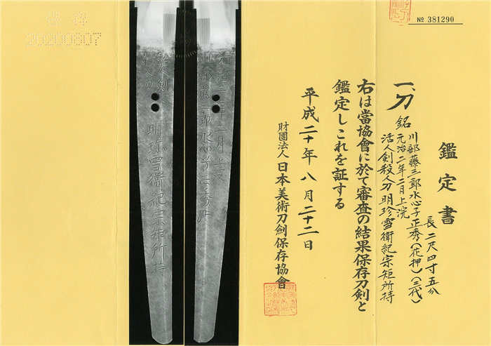 銘:活人剣 殺人刀 明珍雪衛紀宗矩所持