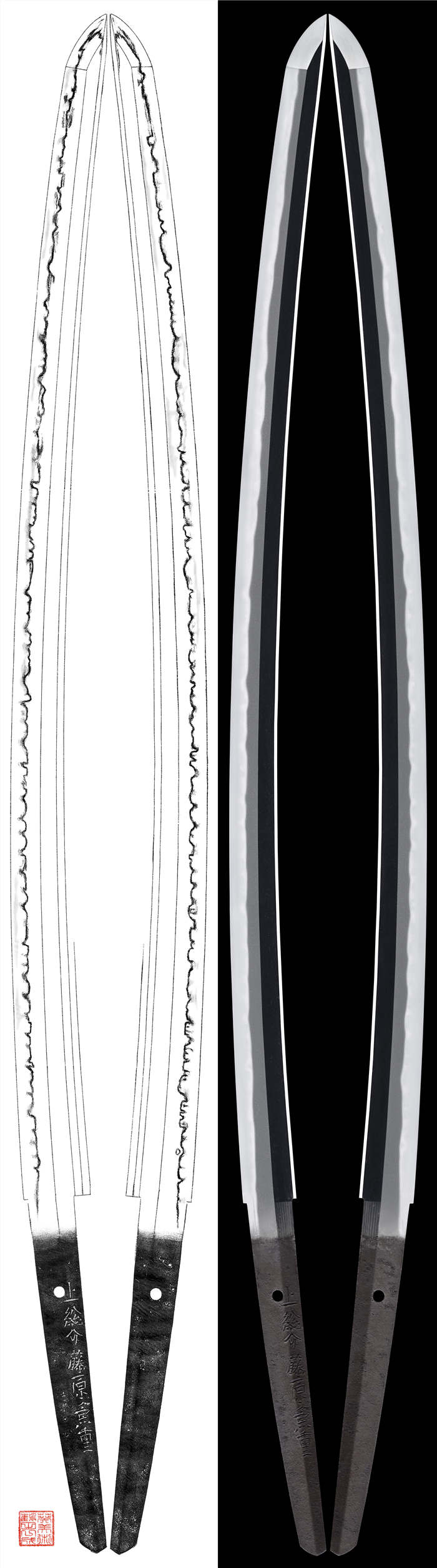 刃紋:刃区より直刃、その先数珠刃を焼き