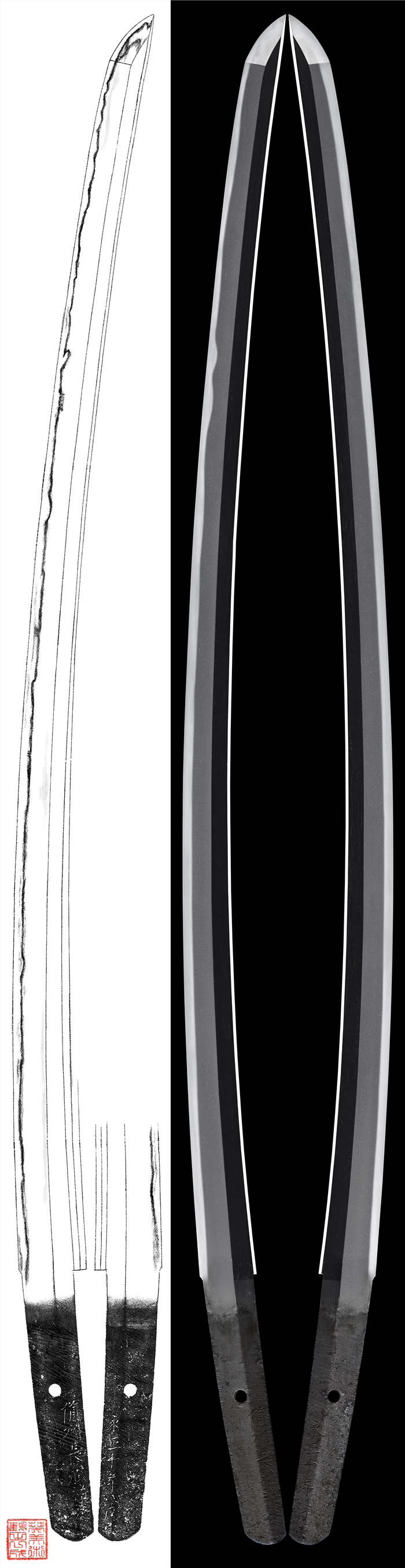 本作が作刀された時代は馬上での戦闘から徒歩による集団戦へと移り、刃長も南北朝時代の豪壮な太刀から軽快で抜刀に便利な二尺から二尺二寸程の打刀へと変化した頃である。