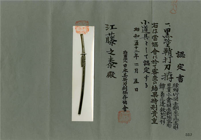 葵美術正真鑑定書:保存刀剣鑑定書及び特別貴重刀剣、特別貴重刀装具