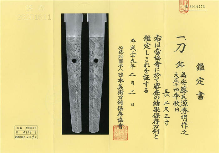 葵美術より一言:本作の秀明は大正2年に刀剣保存会より