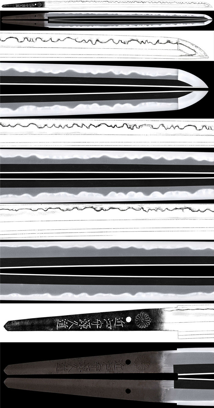 刃紋:錵出来匂口やや深い互の目乱れとなり刃中、砂流。金筋が働く