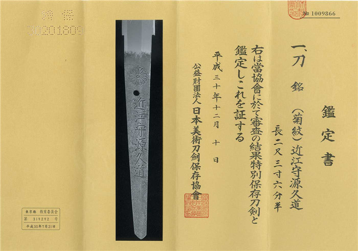 体配:身幅3.32cmと広く重ね厚く反りの浅い切先の延びた体配の作品