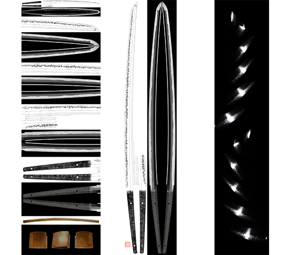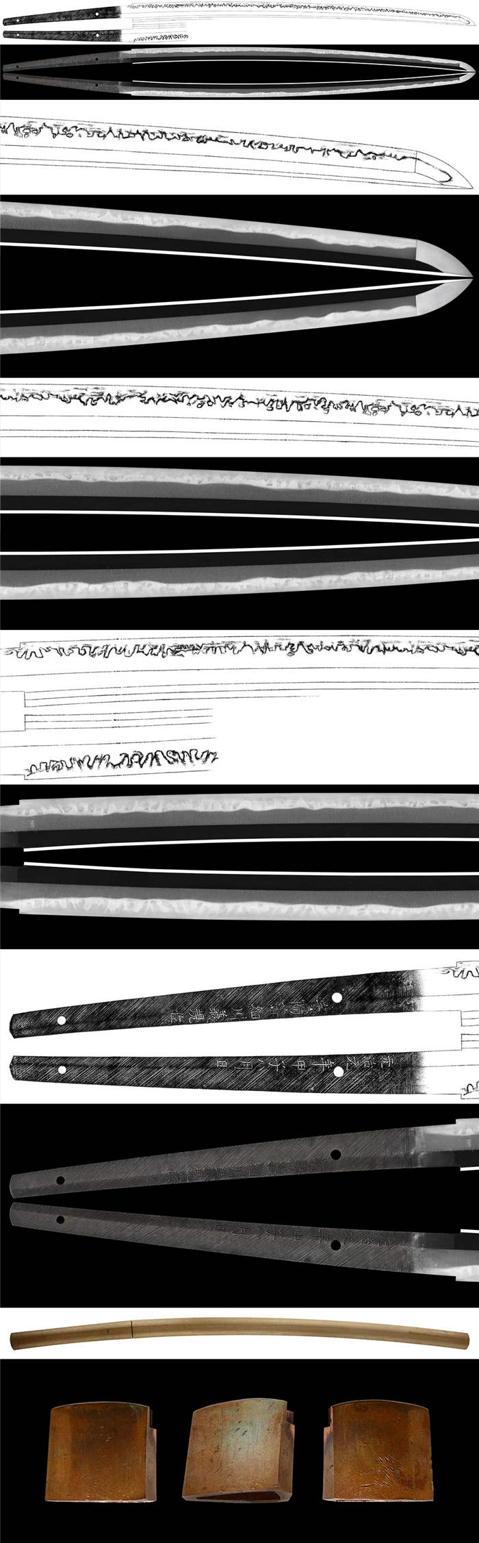 刃紋:小錵出来、丁字乱れが良く働き刃中、砂流、に細かな金筋が働く。