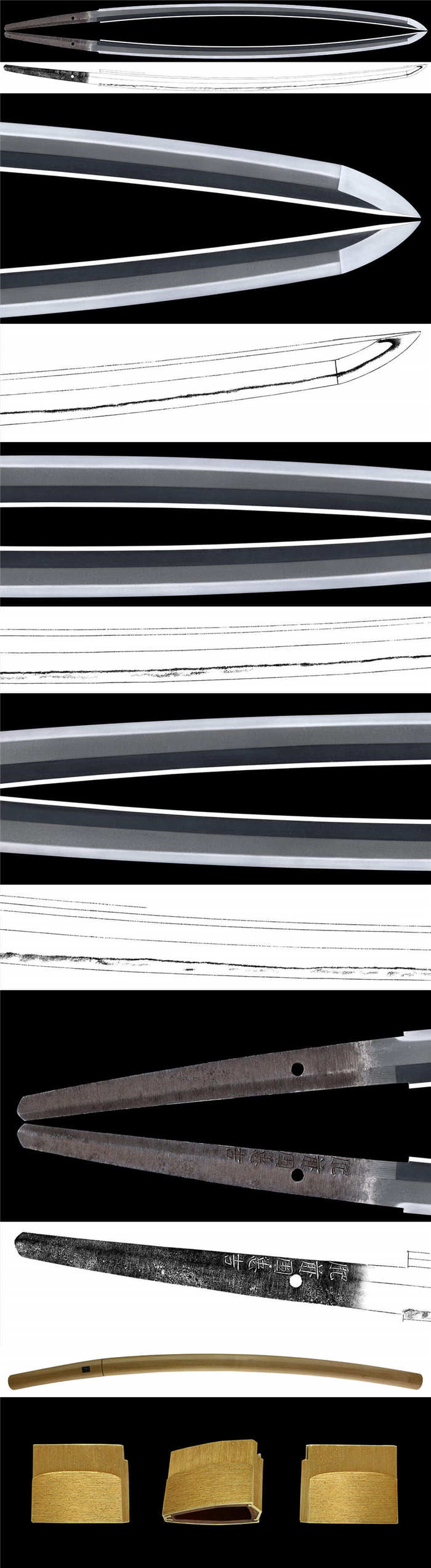 刃紋:錵出来直刃で匂口深く中直刃を品よく焼き刃中、小足、葉が柔かく働き帽子丸く作尖りごころに返る