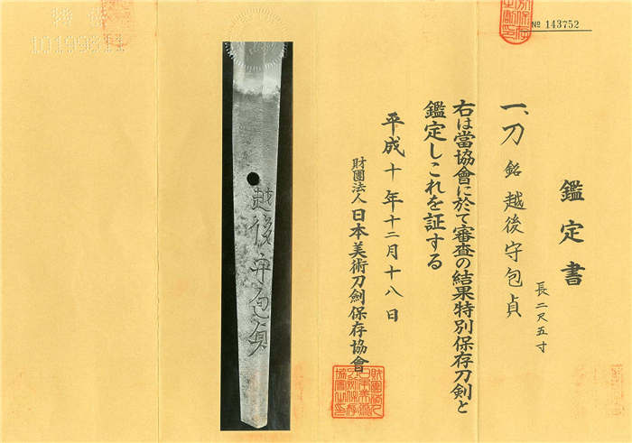 葵美術より一言:この越後守包貞は長寸で身幅が広く