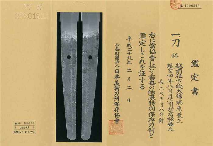 本作の出来は越前住下総大掾藤原兼正としては上々作と評価致します。