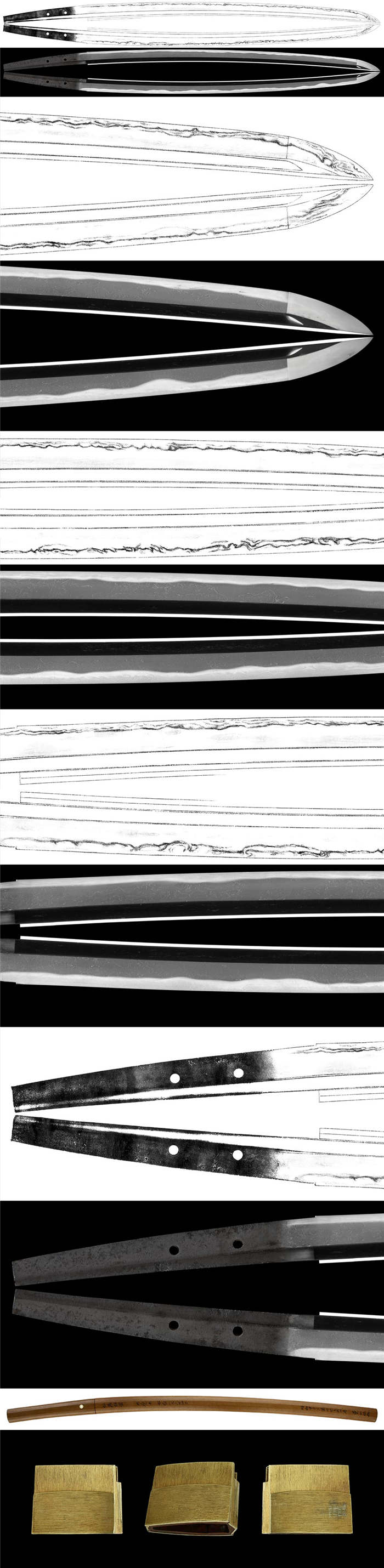 葵美術より:本作は身幅が広く重ね厚く大切先の堂々とした作品でいかにも南北朝時代の姿をした作品です。