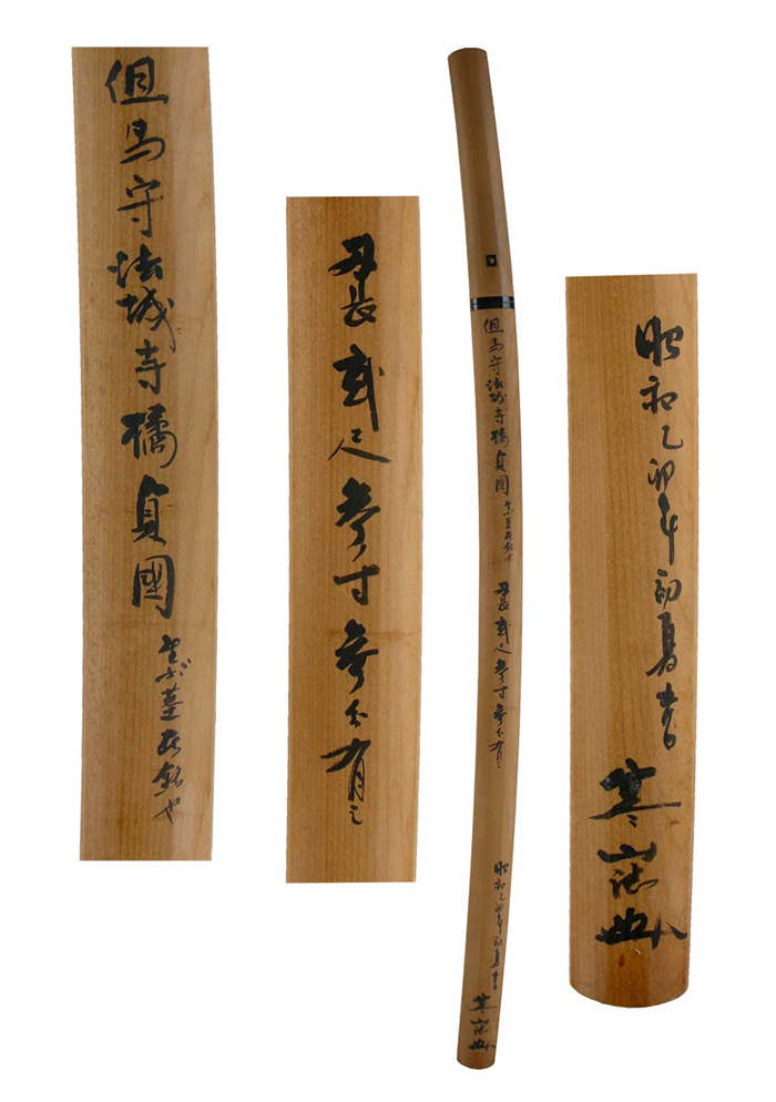 鞘书:但馬守法城寺橘貞国 生茎 在銘也 刃長貳尺三寸三分有之 寒山誌
