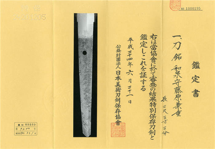 葵美術より一言:本作の刀の出来は和泉守藤原兼重としては最高級の出来で明るく冴えた見事な出来と云えます。