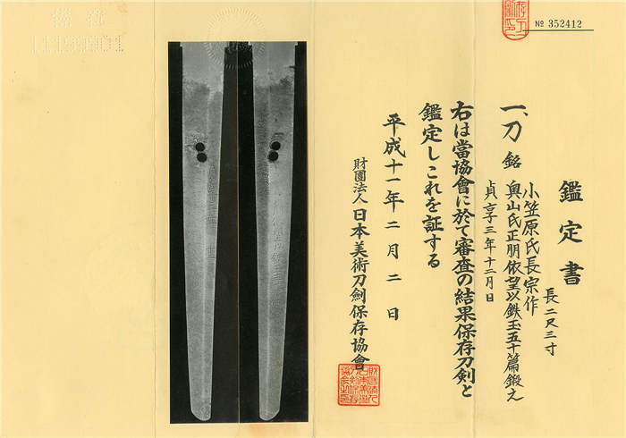 長旨の復活をみたのであろう。銘は常に小さく直刃出来が特徴であります。