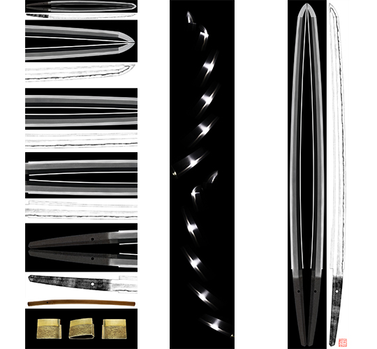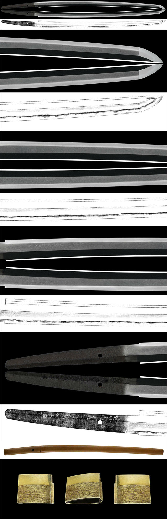 特徴:小錵出来匂口の深い直刃出来で刃中、金筋はいる。