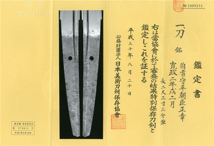 銘:伯耆守朝臣正幸 寛政二年戌二月