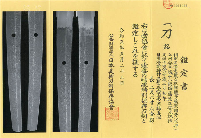 特別保存刀剣鑑定書