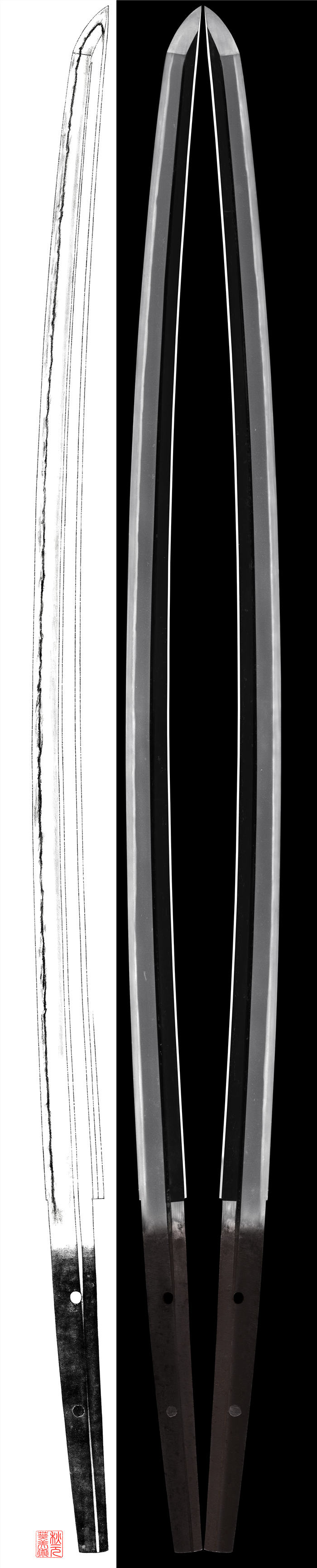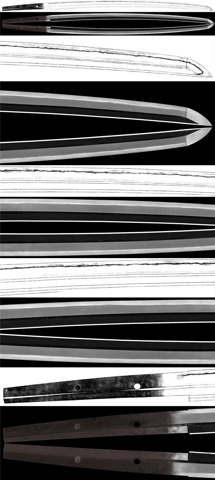 刃紋:錵出来直刃、二重刃がかかkり明るく冴える。
