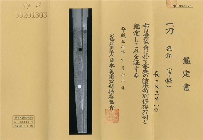 刀:白鞘入り、拵え付き(特別保存刀剣)
