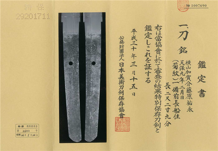 商品名称:刀:(菊紋)一備前長船住横山加賀介藤原祐永