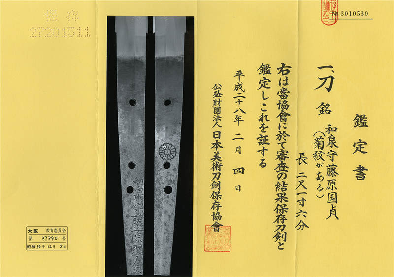 刀铭:和泉守藤原国貞(初代) 菊紋