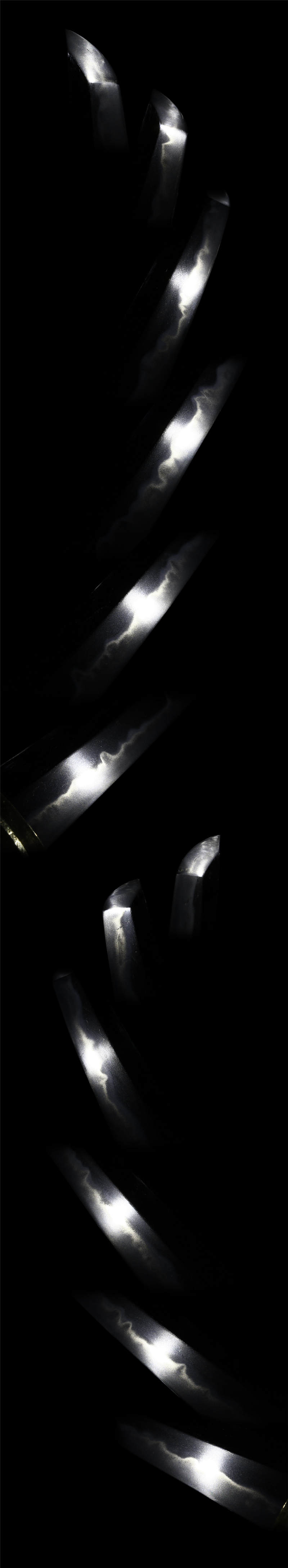 刃文:沸出,气口深互目乱,足良入,刃中砂流流动,帽子乱金丸返。