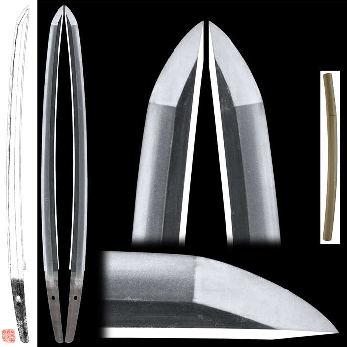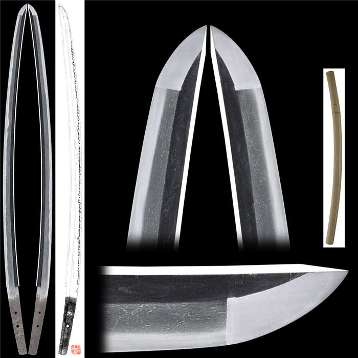体配:大摺上無銘で身幅、重ね尋常な反りが深い体配の良い刀。
