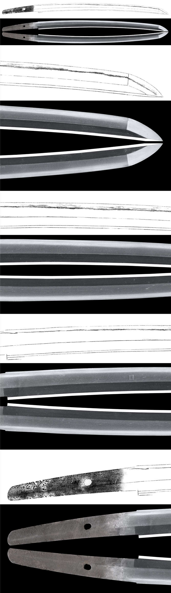 体配:大磨上无铭,身幅、刀身厚度寻常,反深,刀姿优良。