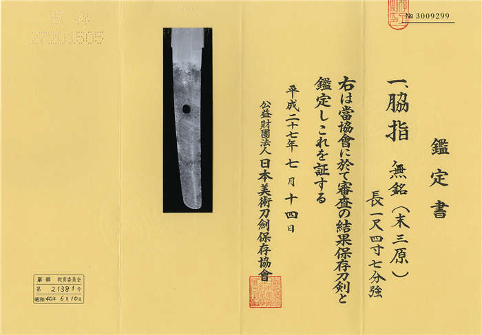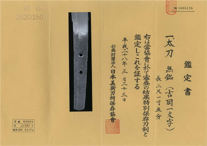 刀铭:,磨上无铭(吉岡一文字)(特別保存刀剑)