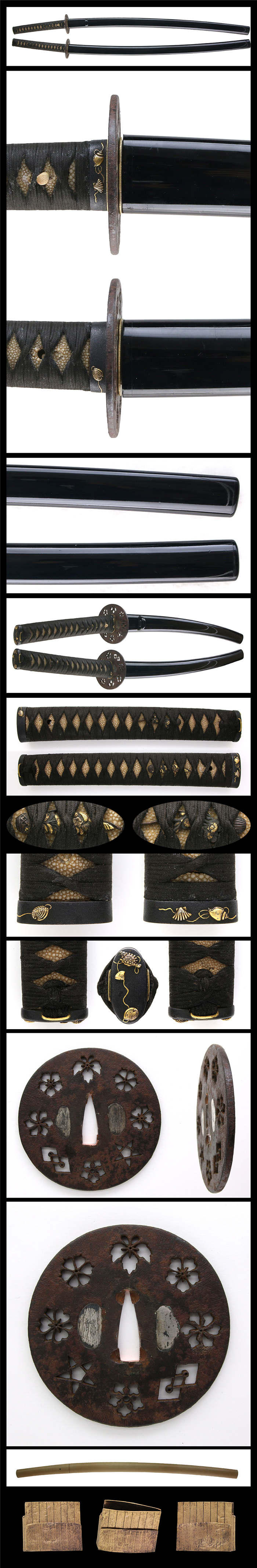 介绍:本作是二代河内守国助的刀作。二代河内守国助由于夹在初代和二代之间,又被称为中河内。刃文华丽,有新刀一文字的美称,作刀期从庆安至元禄年间(1648~1703),元禄11年(1869)逝世。初创拳丁字乱,锻刀技艺高超,在当时极富名气。此外,国助与安定一样,刀作少反。本作无荒沸,小沸出来气口深,刀姿优良。