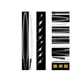 介绍:在備後国三原一带繁荣发展的刀工群总称为古三原,其中三原正广与正家是最具代表性的两家。本作虽无铭,但是经鉴定为师三原正广加的作品。集合了大和系统和邻国青江的特质,地金优美,足以与青江相媲美。